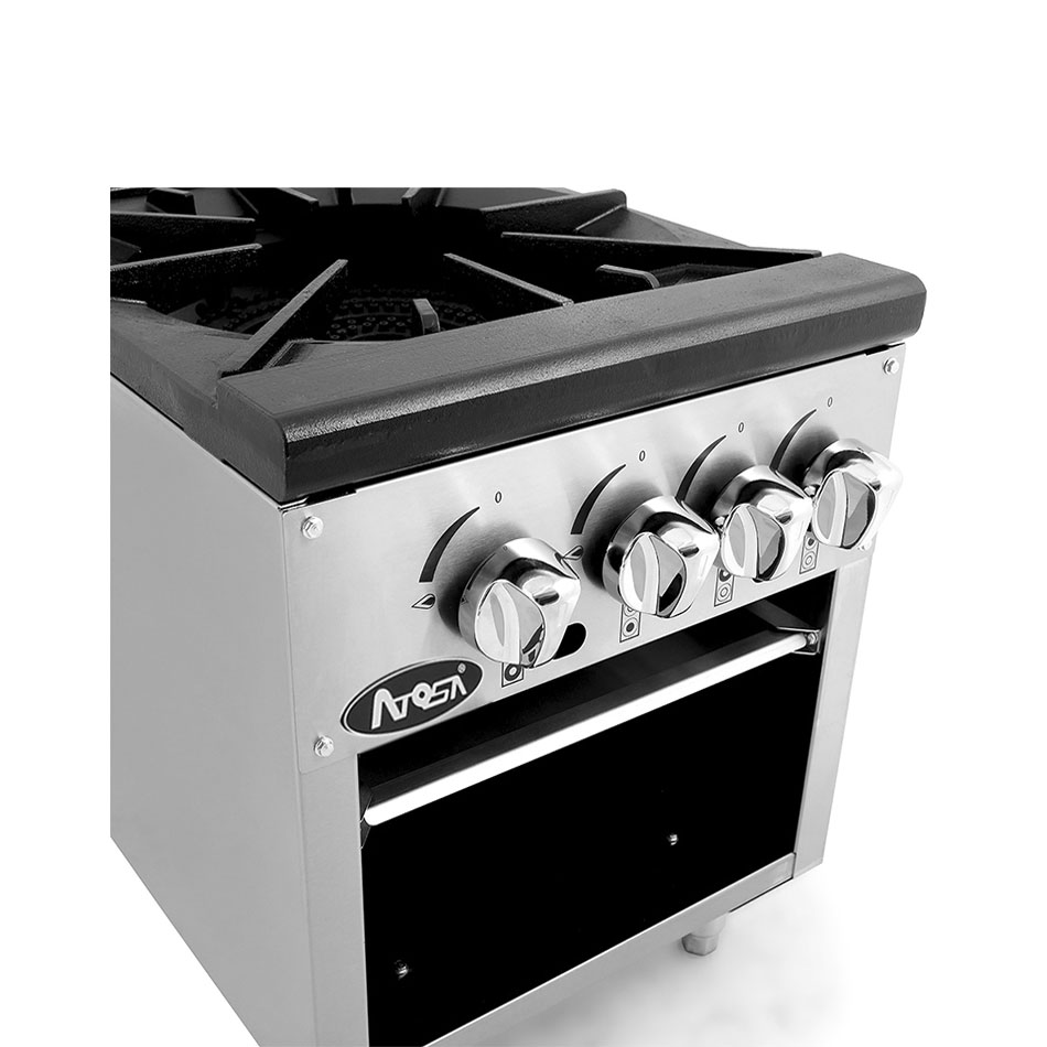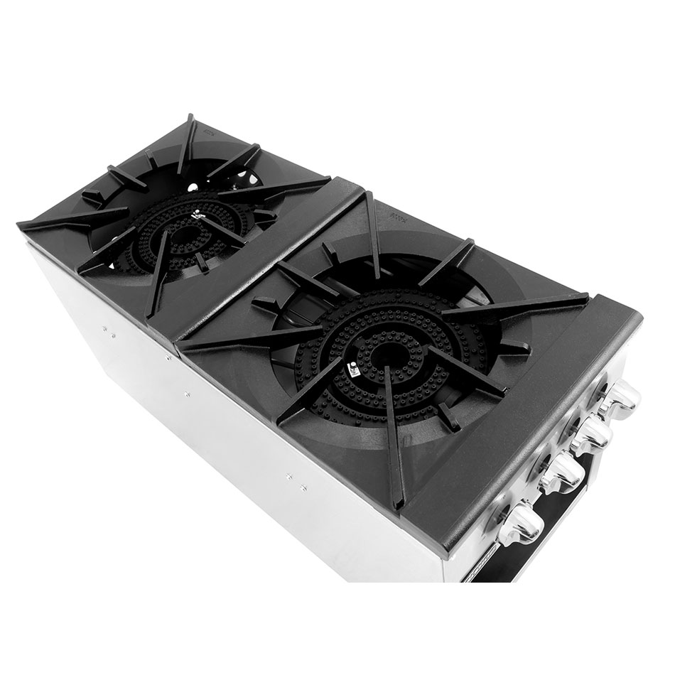 - Heavy, cast iron three- ring burner, rated at a total of 80,000 BTU/hr