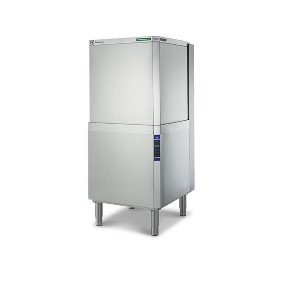 • Built-in atmospheric boiler sized to raise incoming cold water to a minimum of 84 °C for sanitizing rinse. No external boiler is required. Constant temperature of 84 °C throughout the rinsing cycle regardless of the network’s water pressure.