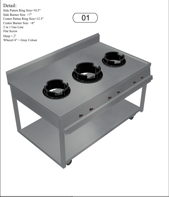 3-Wok Chinese Burner with Caster Wheels